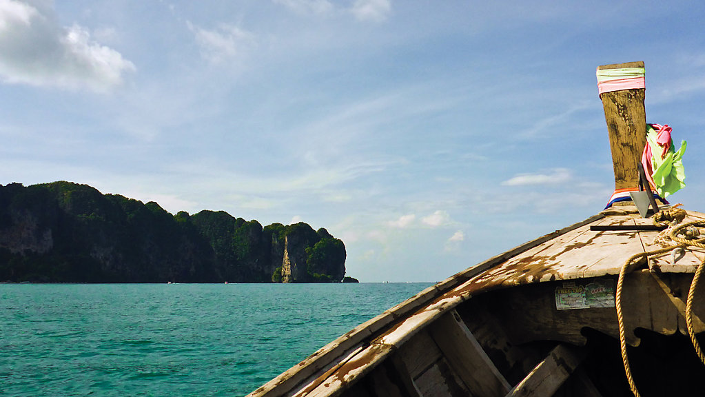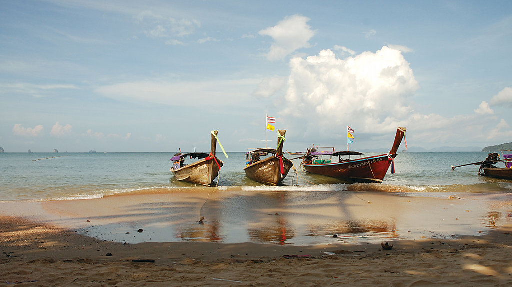 postcard thailand. this is where all the photos in the guidebooks of thailand come from. turquoise water, soft white sand. many tourists. a holy shrine full of phallus symbols, named princess cave. fishermen pray for more fish there ;) monkeys stealing water bottels. and me rock-climbing through jungle and thick mud in ... *ehm* ... flip-flops.
